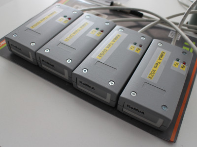 Depending on the communication port (type and connector), a generic Bluetooth serial adapter can be used as the communication module to connect the industrial machine and the mobile device running VRS Terminal. If a generic Bluetooth adapter can not be used, the KoMnA communication module is used. The KoMnA communication module is developed for use in industrial conditions: it offers a wide range of options regarding connectors, power source, mounting and environment conditions.